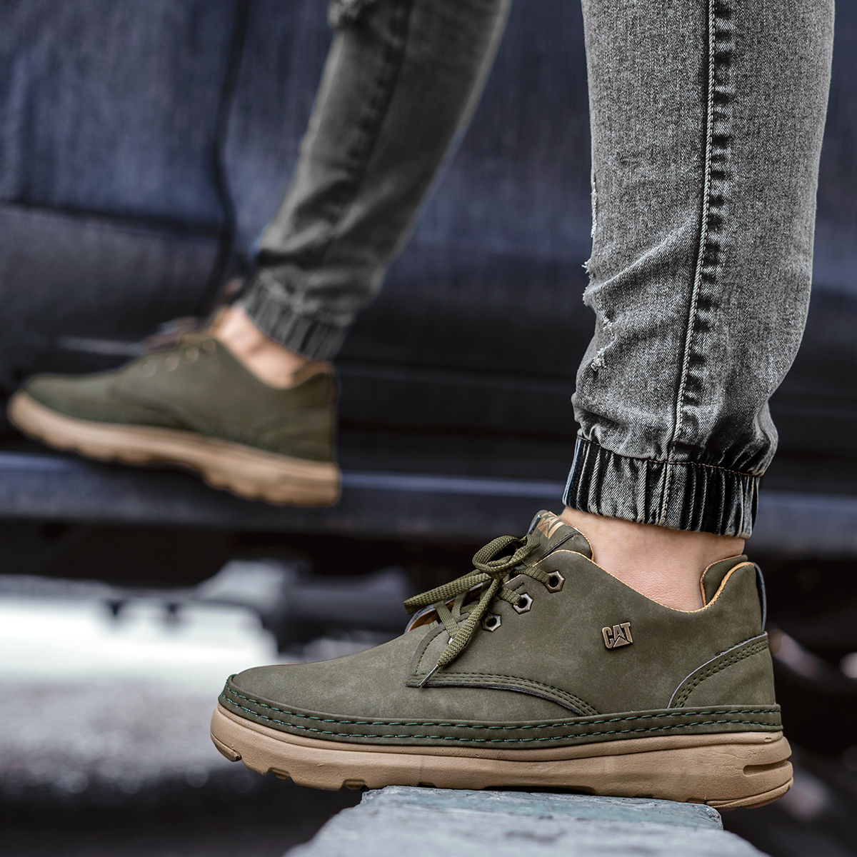کفش تخت CAT سبز زیتونی مردانه مدل Magno